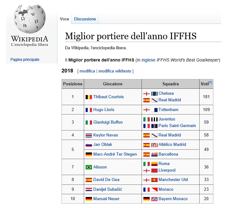 che puoi essere ancora tra i tre meglio portieri al mondo ... poi della classifica ..... parliamone..... Lioris al massimo può portare la valigia a Buffon ..... e Courtois il porta borracce.....